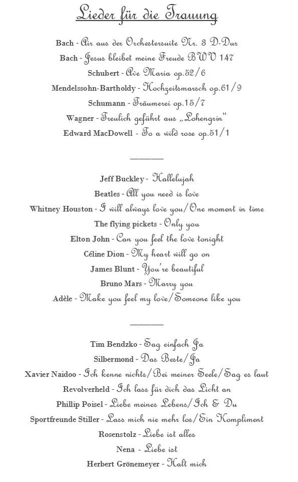 Hier finden Sie eine Übersicht an Liedern für die Trauung.
